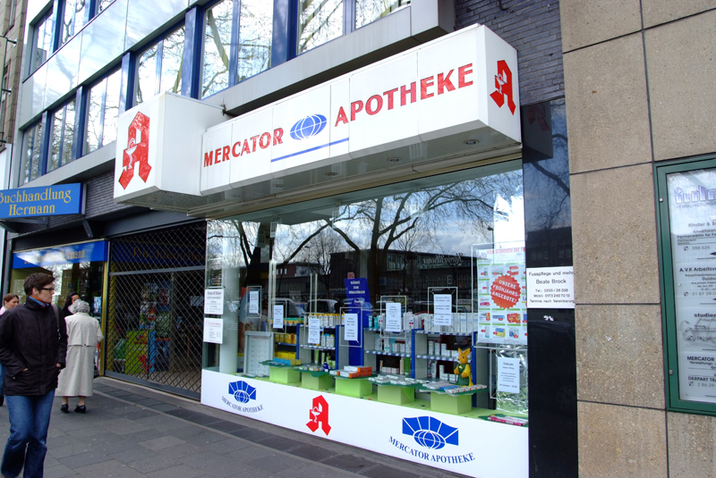 | '메르카토르 약국', 뒤스부르크 중앙역 근처 |